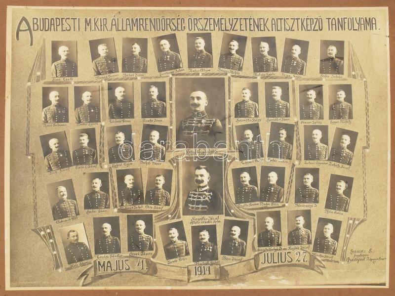 1914 Budapesti m. kir. államrendőrség őrszemélyzetének altisztképző tanfolyama, keményhátú tablófotó Hauser S. fényképész budapesti műterméből, 28,5x39 cm
