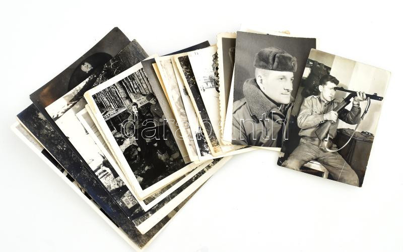 Leírás: A Magyar Néphadsereg katonáit ábrázoló vegyes felvételek, össz. 18 db fotó, változó méretben és állapotban