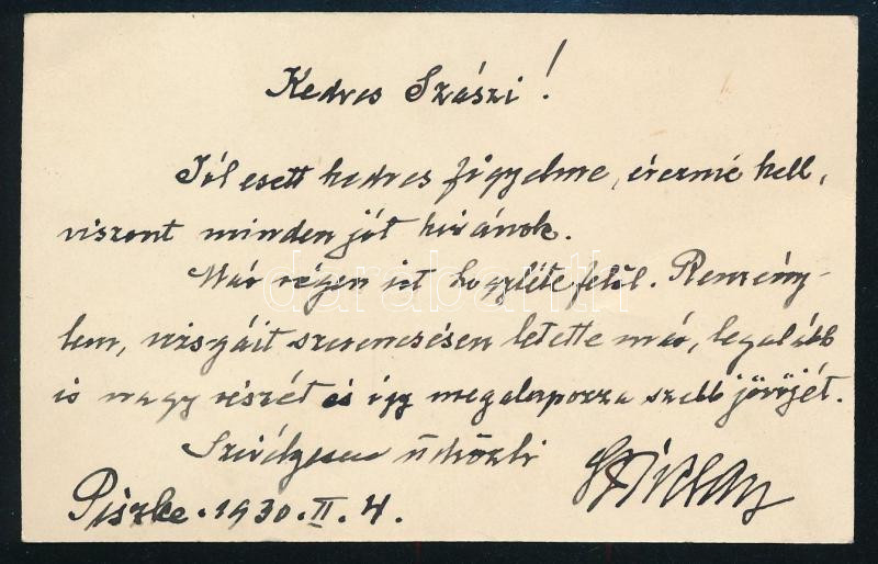 Leírás: Sziklay Kálmán nyugalmazott huszárezredes névjegye, hátoldalán üdvözlő sorai és aláírása