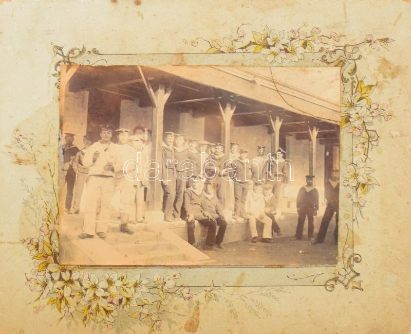 cca 1900 Az Osztrák-magyar haditengerészet S.M.S. Kaiserin Elisabeth hadihajó matrózai. fotó kartonon 20x16 cm / The Austro-Hungarian Navy S.M.S. Sailors of the battleship Kaiserin Elisabeth. photo on cardboard