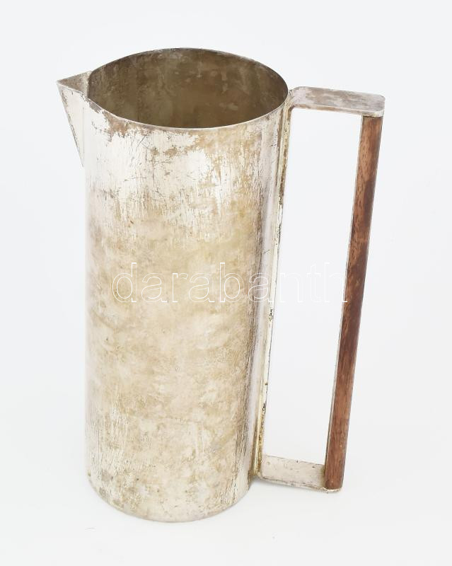 Leírás: Art deco kiöntő, ezüstözött, fa nyéllel, jelzés nélkül, kopott, m: 24 cm