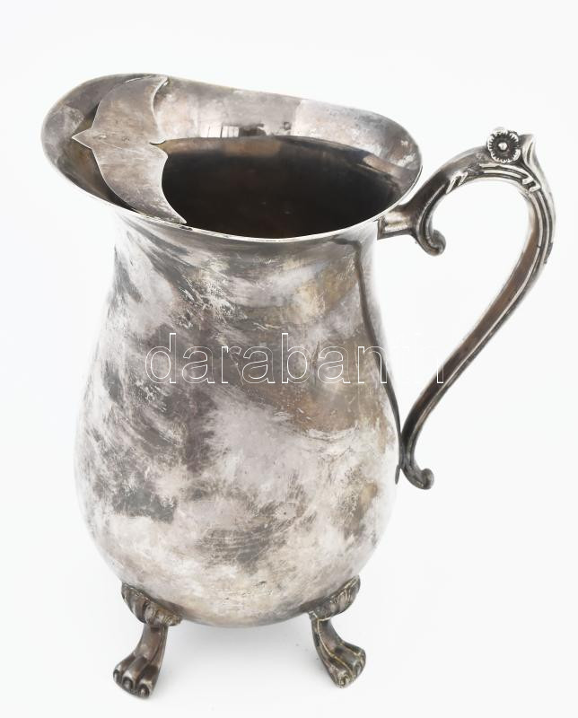 Leírás: Szecessziós ezüstözött kancsó, kopással, m: 22,5 cm