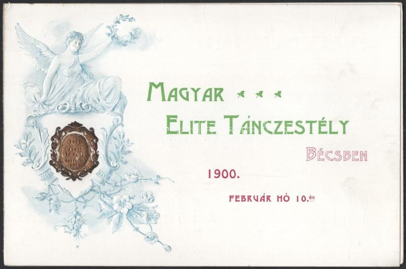 Leírás: 1900 Magyar elite táncestély Bécsben szecessziós meghívó leporello dombornyomott. Hajtásnál szakadással