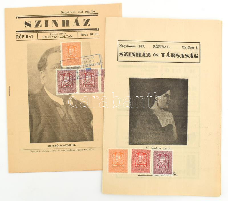 1927, 1931 Színház, Színház és társaság 2 db nagykőrösi kulturális fol... https://www.darabanth.com/hu/471-Gyorsarveres/471.0/Mutargy-papirregiseg-egyeb/Nyomtatvanyok~1000015/1927-1931-Szinhaz-Szinhaz-es-tarsasag-2-db-nagykorosi-kulturalis-folyoirat~II3143158