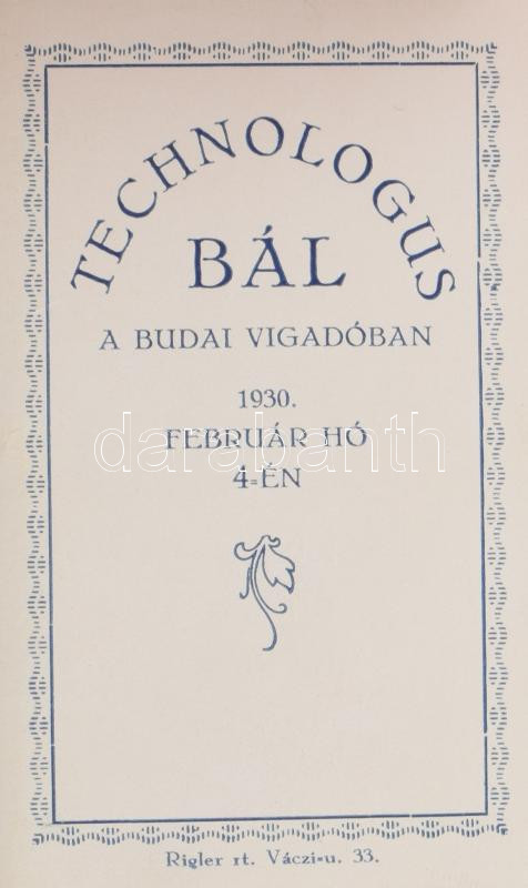 1930 Technológus Bál táncrend aranyozott vászon borítóval https://www.darabanth.com/hu/471-Gyorsarveres/471.0/Mutargy-papirregiseg-egyeb/Nyomtatvanyok~1000015/1930-Technologus-Bal-tancrend-aranyozott-vaszon-boritoval~II3193201