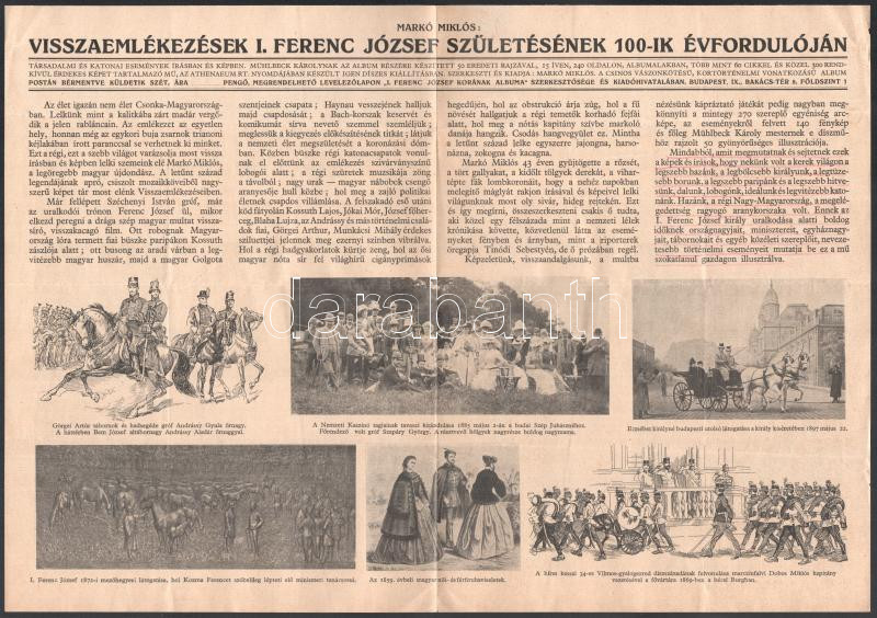 1930 Visszaemlékezések I. Ferenc József születésének 100-ik évfordulój... https://www.darabanth.com/hu/471-Gyorsarveres/471.0/Mutargy-papirregiseg-egyeb/Nyomtatvanyok~1000015/1930-Visszaemlekezesek-I-Ferenc-Jozsef-szuletesenek-100-ik-evfordulojan-kepes-nyomtatva~II3143250