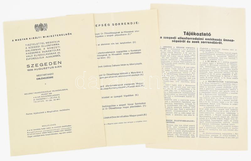 1939 A szegedi ellenforradalmak, a Nemzeti Hadsereg Dunántúlra való elindulásának 20. évfordulója alkalmából tartott megemlékezés programja térképpel. 3 lap.