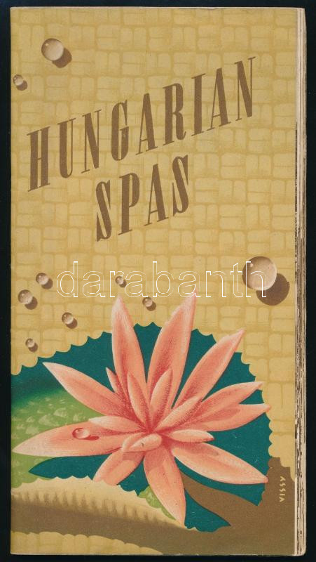 1949 Hungarian Spas, az IBUSZ Magyarország fürdőit bemutató, angol nyelvű ismertető prospektusa, fekete-fehér fotókkal, a borítón Vissy Gábor grafikájával. Bp., Szikra-ny.