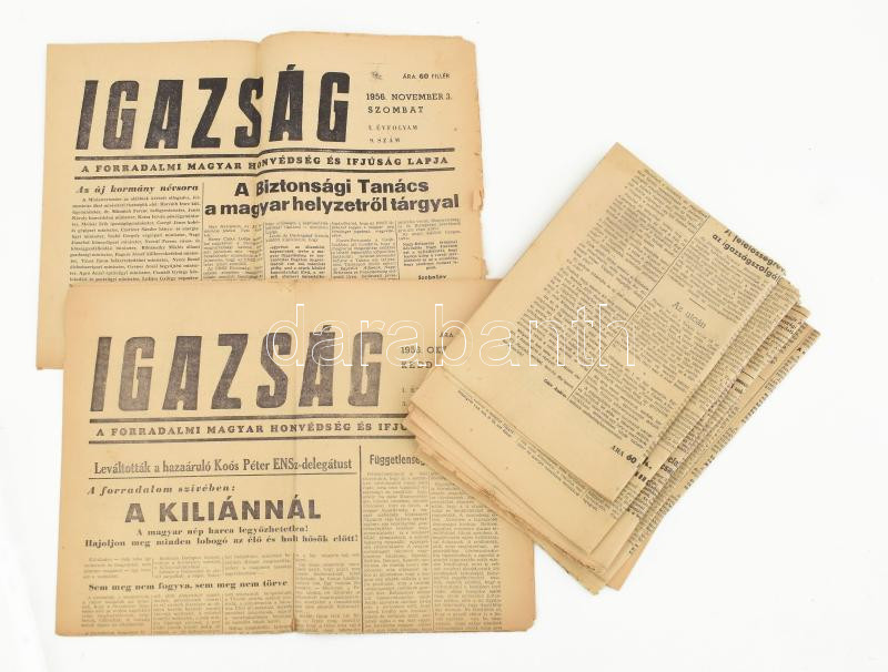 1956-os forradalmi újsággyűjtemény, össz. 10 db: Magyar Honvéd, nov. 3... https://www.darabanth.com/hu/471-Gyorsarveres/471.0/Mutargy-papirregiseg-egyeb/Nyomtatvanyok~1000015/1956-os-forradalmi-ujsaggyujtemeny-ossz-10-db-Magyar-Honved-nov-3-Nepszava-nov-1-N~II3139363