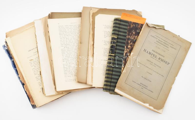 ca 1874-1910 A Magyar Tudományos Akadémia elhúnyt tagjai fölött tartott emlékbeszédek sorozat kb 20 kötete, sérült, hiányos darabok, érdekes emberekről