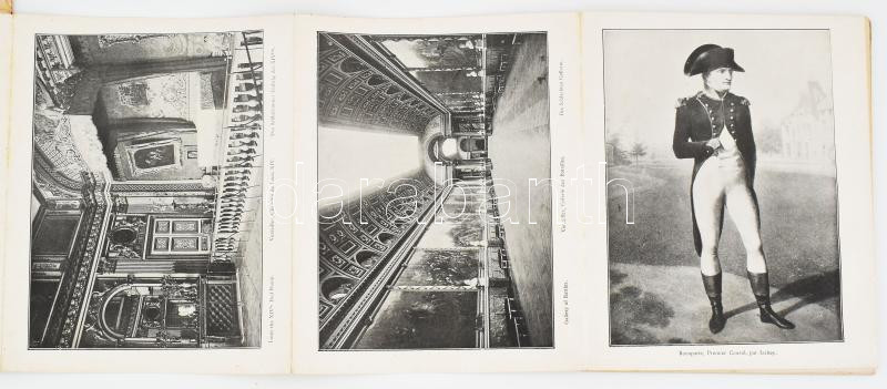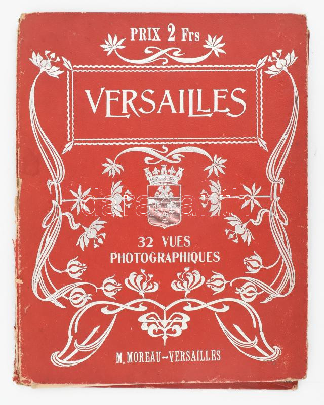 Leírás: cca 1900-1920 Versailles, leporelló 32 db fekete-fehér képpel (enteriőrök, Kis-Trianon, stb.), sérült, két részre vált borítóval, 22x17 cm