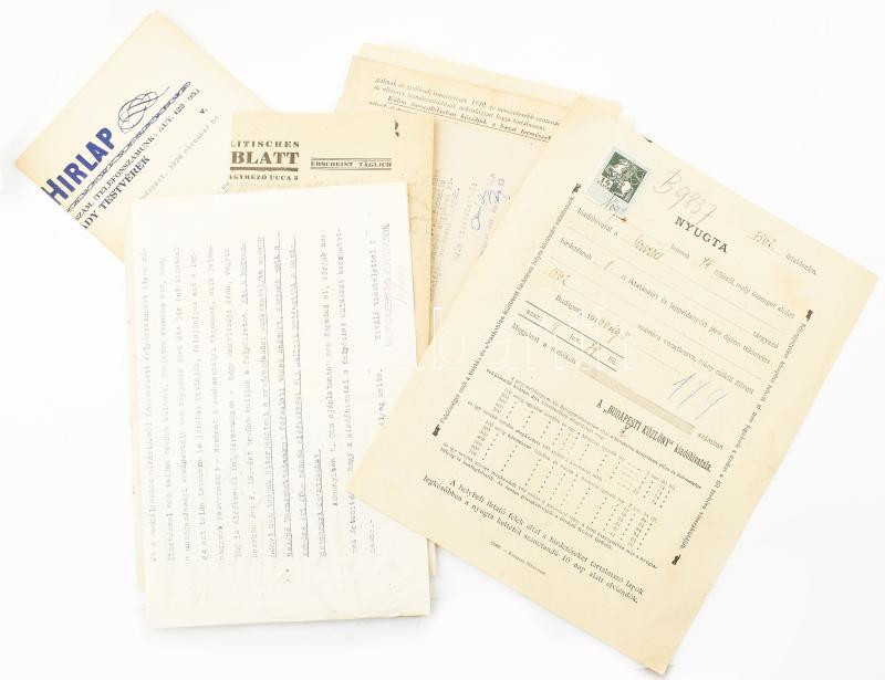 cca 1920-1940 Szerkesztőségi levelek, díjértesítők, stb. magyar újságoktól, az Új időktől a Magyar Mezőgazdaság c. lapig. fejléces levélpapírokon, összesen kb. 15-20 db