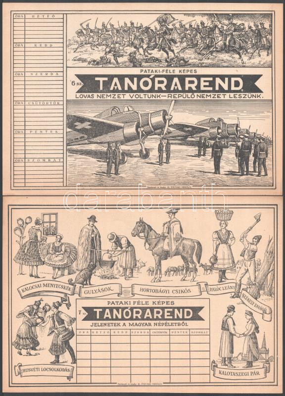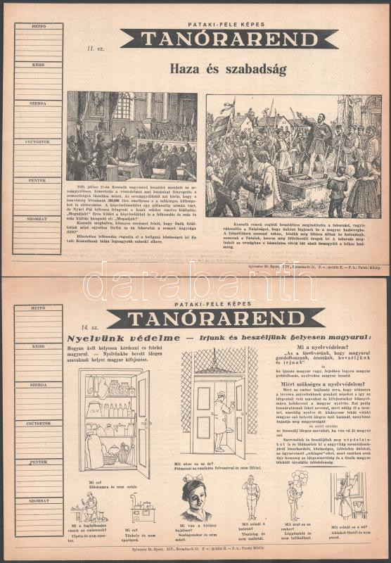 cca 1930-1940 Pataki-féle képes tanórarend, 11 db https://www.darabanth.com/hu/471-Gyorsarveres/471.0/Mutargy-papirregiseg-egyeb/Nyomtatvanyok~1000015/cca-1930-1940-Pataki-fele-kepes-tanorarend-11-db~II3187520