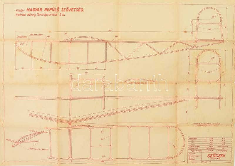 Leírás: cca 1970 Szöcske és Sas repülőmodellek siklómodellek rajzai