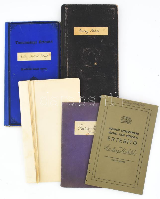 1936-1942 A Budapesti Kir. M. Pázmány Péter Tudomány-egyetem hittudományi karára járó hallgató leckekönyve, aláírásokkal. -1924-1928-1936 Budapesti M. Kir Középiskolai Tanárképző-Intézet Gyakorló-Középiskolájának leckekönyve, ugyannak a személynek a részére, valamint érettségi bizonyítványa , valamint 2 db elemi iskolai értesítő füzete.
