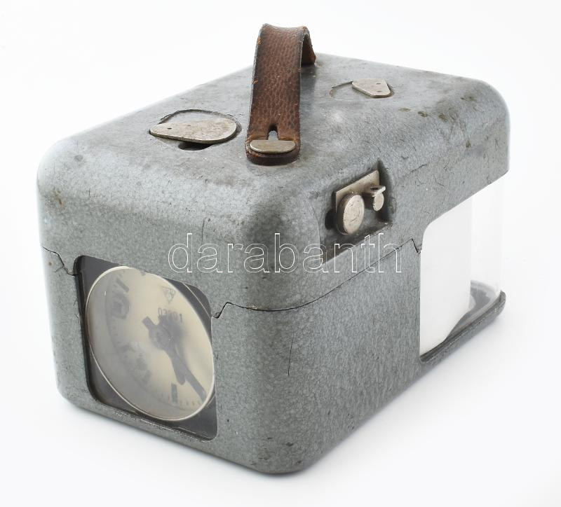 Pragotron galambász versenyóra. cca 1960, fémházas, órás által ellenőrizve, működik, 20x12x13 cm /// "Versenyek alkalmával a galambok kis gyűrűit apró kapszulákban a kulcs elfordításakor időpecséttel a tárolóba helyezve az érkezési sorrend később hitelesen ellenőrizhető."