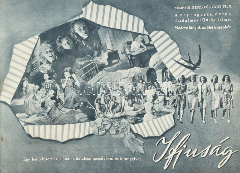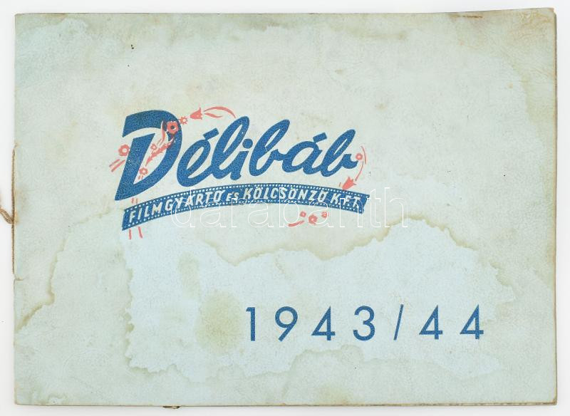 1943/44 Délibáb Filmgyártó és Kölcsönző Kft. képes reklám katalógusa az éved mozifilmjeivel, közte az "Ördöglovas" (Szeleczky Zita, Jávor Pál), "Aranypáva" (Páger Antal, Mezey Mária) és "Egy gép nem tért vissza" c. filmek. 12 szt. oldal. Kiadói harántalakú, színórfűzésű papírkötésben, foltos borítóval és részben foltos lapokkal.