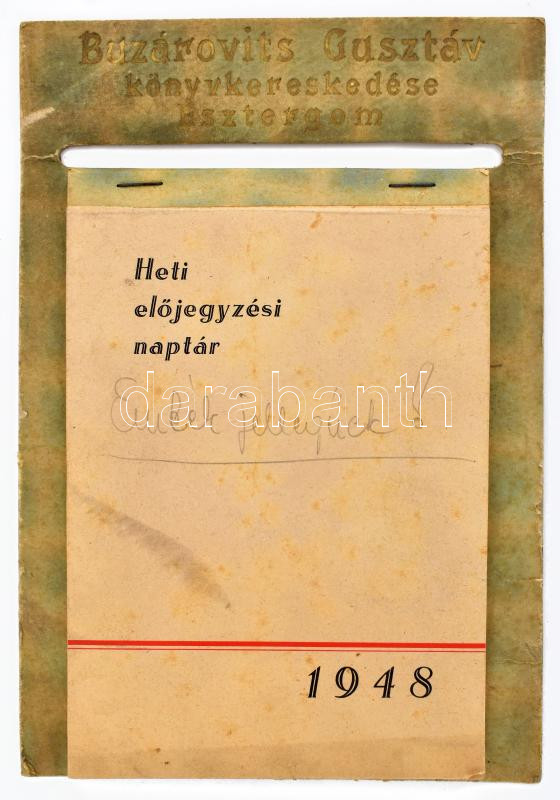 Leírás: 1948 Esztergom, Buzárovits Gusztáv könyvkereskedése, Heti előjegyzési naptár, nagyrészt kitöltetlen állapotban, 24x16 cm