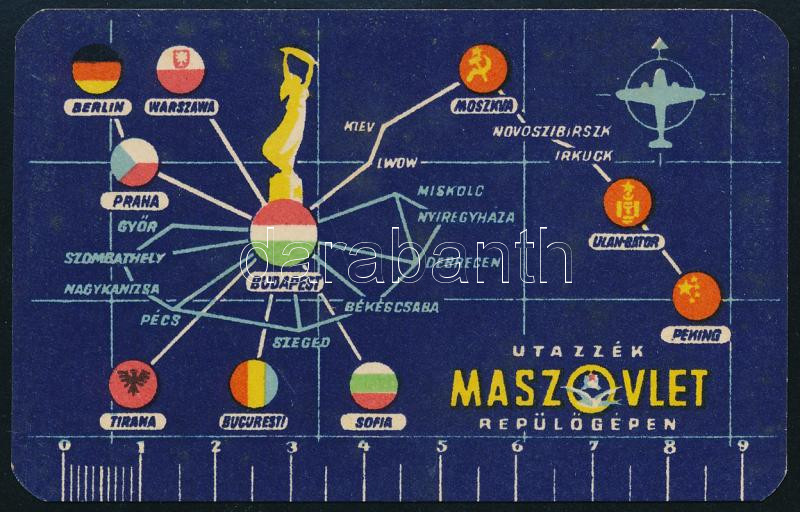 Leírás: 1953 MASZOVLET légitársaság reklámos kártyanaptár, jó állapot