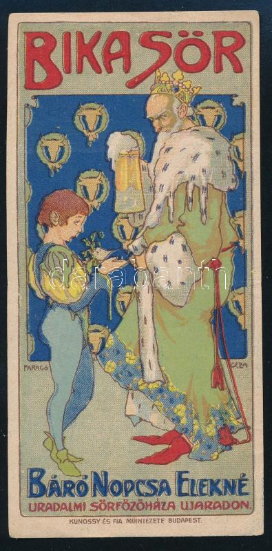 Leírás: Báró Nopcsa Elekné Uradalmi Sörfőzőháza, Újarad, litografált számolócédula, Faragó Géza (1877-1928) grafikája, Bp., Kunossy-ny.