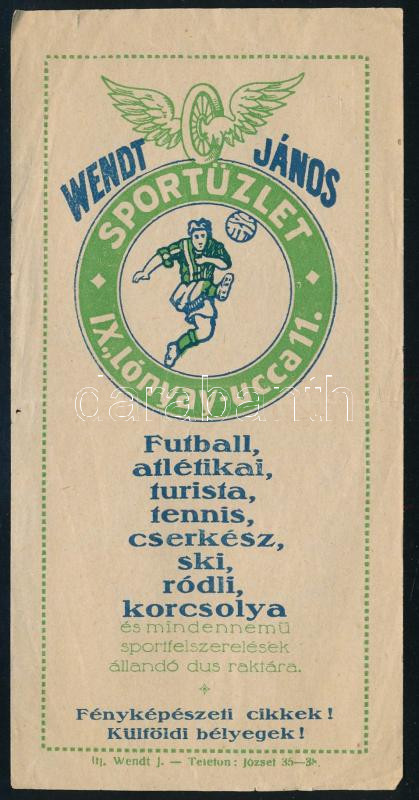 "Wendt János Sportüzlet IX., Lónyay-ucca 11." számolócédula. https://www.darabanth.com/hu/471-Gyorsarveres/471.0/Mutargy-papirregiseg-egyeb/Reklam~1000006/Wendt-Janos-Sportuzlet-IX-Lonyay-ucca-11-szamolocedula~II3190082
