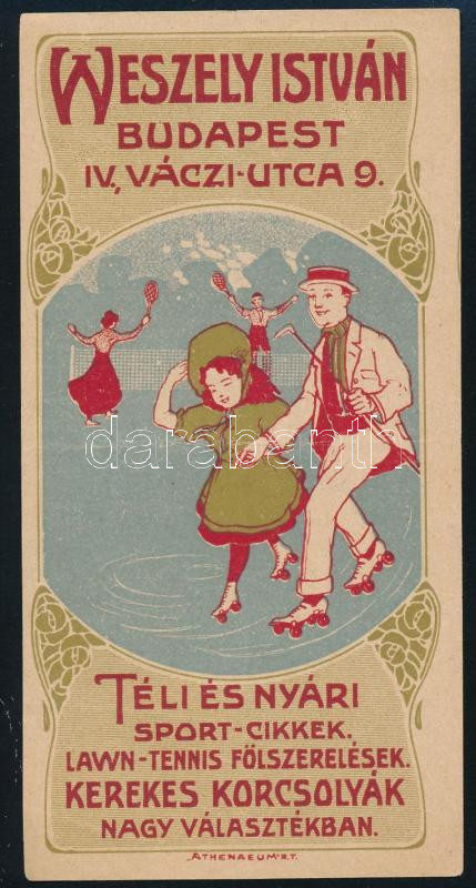 Weszely István Téli és nyári sport-cikkek. Budapest számolócédula https://www.darabanth.com/hu/471-Gyorsarveres/471.0/Mutargy-papirregiseg-egyeb/Reklam~1000006/Weszely-Istvan-Teli-es-nyari-sport-cikkek-Budapest-szamolocedula~II3190532