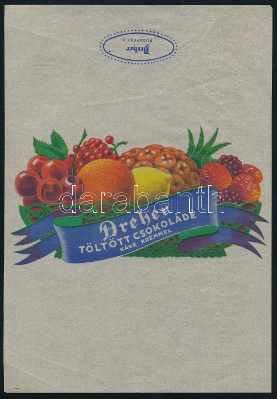 Leírás: cca 1930 Dreher töltött csokoládé csokipapír 16x22 cm