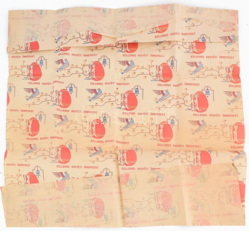 Leírás: cca 1930 Kellemes húsvéti ünnepeket feliratos csomagoló papír csomagoló papír; jelzés nélkül; 1 ív, m: 70x90cm