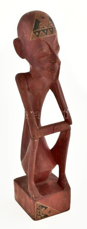 Leírás: Afrikai faragott, festett fa szobor 42 cm