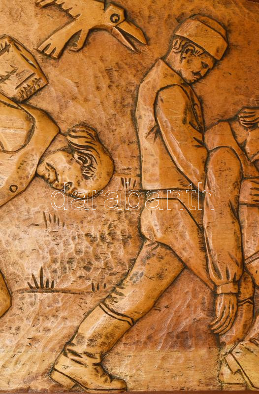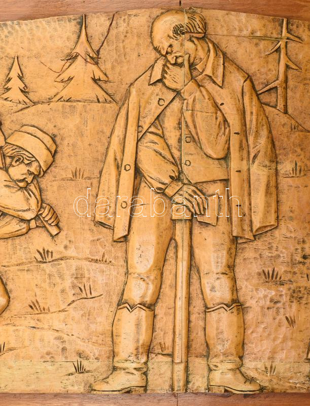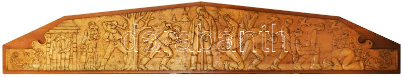 Csorvássy István (1912-1986): A székelyek története. Faragott fa, fa lapon. A neves erdélyi szobrász életművének kiemelkedő darabja ez a hatalmas méretű fali relief, mely a székelyek szenvedéstörténetét mutatja be egy székely férfi személyes sorsán keresztül. Jelzéssel, minimális kopással, impozáns, kiemelkedő darab, 200x37 cm CSAK SZEMÉLYES ÁTVÉTEL, NEM POSTÁZZUK! / ONLY PERSONAL COLLECTION!