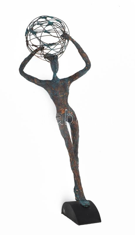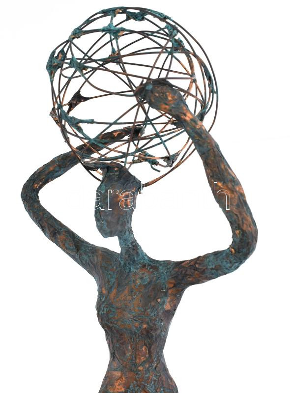 Leírás: Gérné Mezősi Aranka: Atlasz. 2018. Vegyes technika, fa talapzaton, jelzett, m: 41 cm