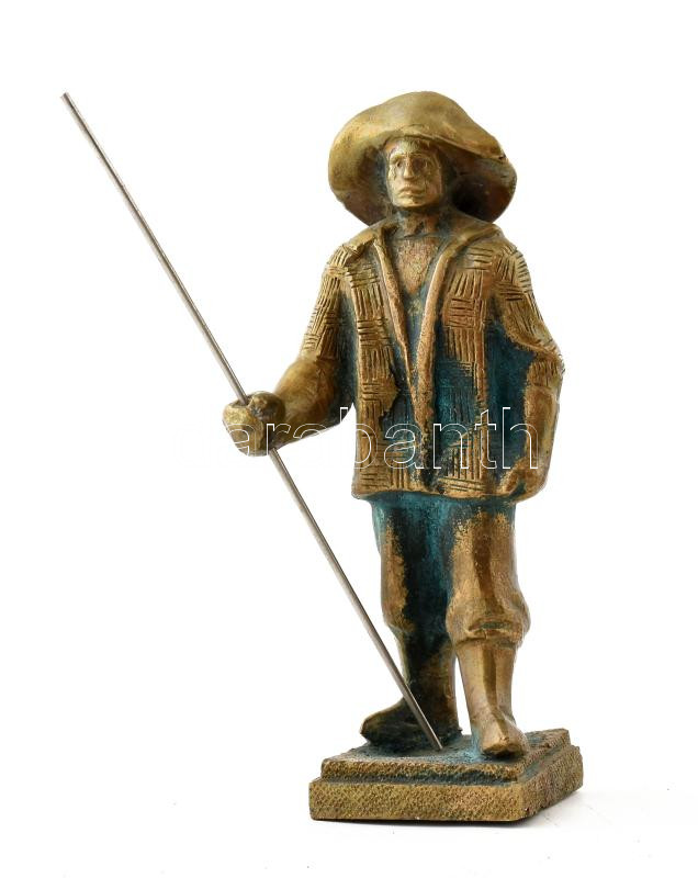 Leírás: Halász bronz szobor. Jelzés nélkül. 16 cm