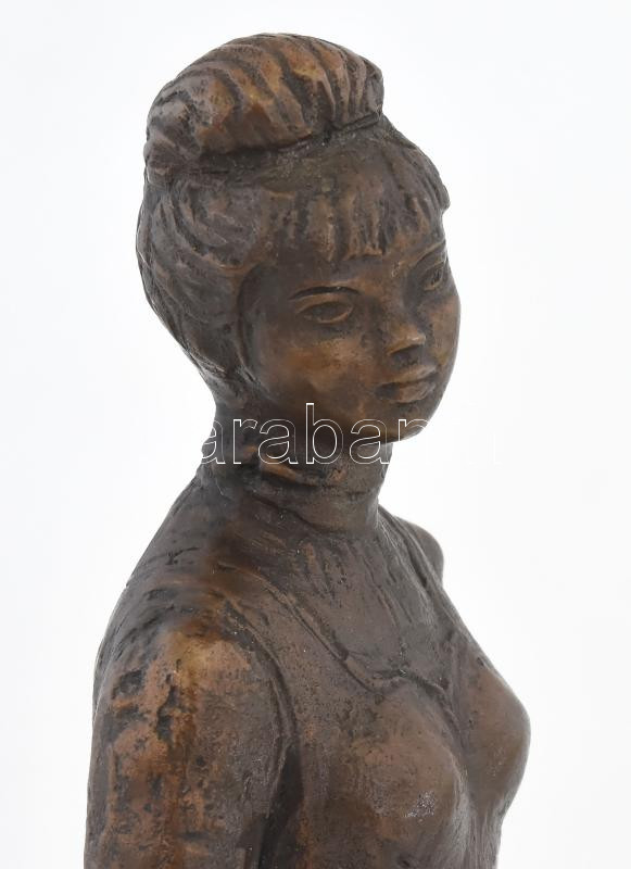 Leírás: Herczeg Klára (1906 - 1997): Kontyos lány. Bronz, márvány talapzaton, jelzett, m: 28 cm