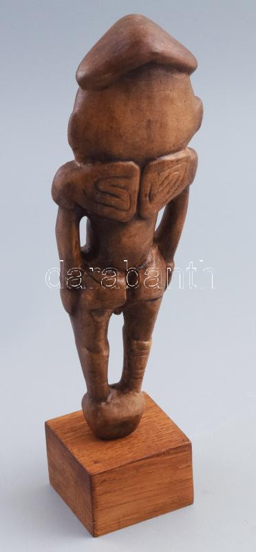 Leírás: Kerámia afrikai szobor, engóbozott, fa talapzaton, m: 18,5 cm