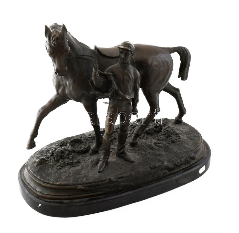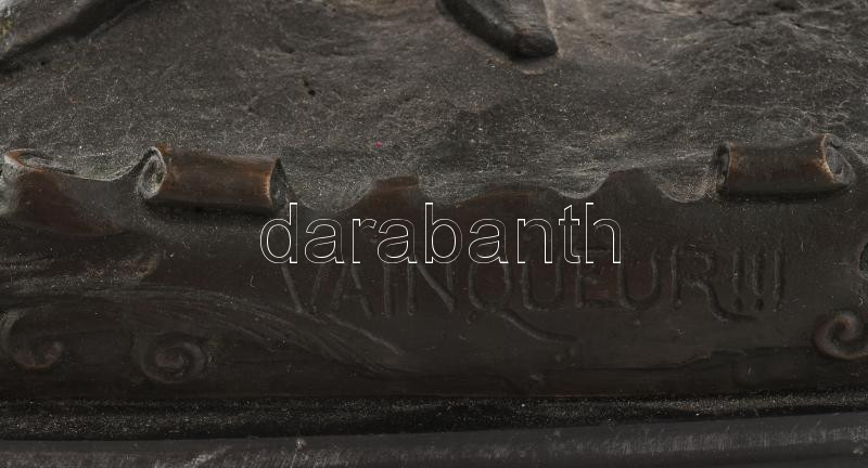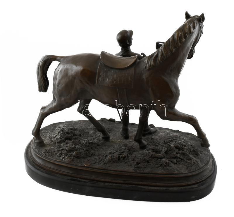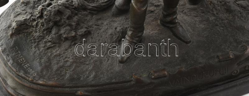 cca 1900-1920 Pierre Jules Mene (1810-1879) után: Vainqueur!!! (Győztes!!!) 1866. Patinázott bronz, márvány talapzaton, öntési pecséttel is jelezve, hibátlan, talapzaton kis kopással, 43x23x35 cm / cca 1900-1920 After Pierre Jules Mene (1810-1879): Vainqueur!!! (Winner!!!) 1866. Patinated bronze on marble pedestal. Signed, flawless, with small wear in pedestal, 43x23x35 cm KIZÁRÓLAG SZEMÉLYES ÁTVÉTEL, NEM POSTÁZZUK! / ONLY PERSONAL COLLECTION AT OUR OFFICE!