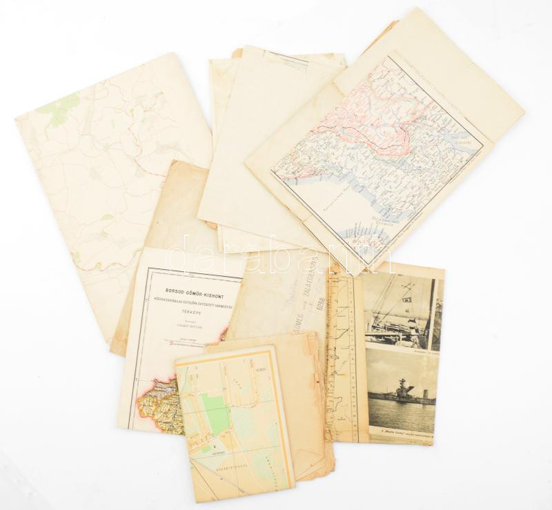 Leírás: 14 db térkép: magyar és külföldi, világháborús, stb nagyrészt XX: sz. eleje