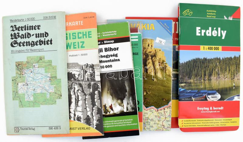Leírás: 8 db vegyes turistatérkép, autótérkép: Erdély, Csángóföld, Lengyelország, Németország, stb.