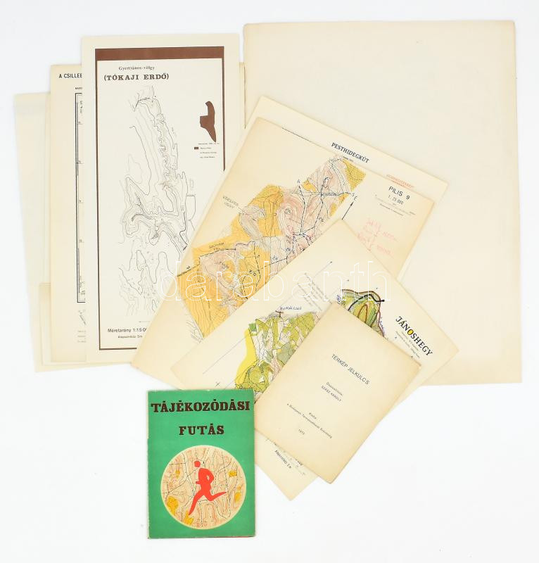 cca 1965-1980 Tájékozódási futás (tájfutás) ismertető prospektus + Térkép jelkulcs, összeáll.: Szász Károly + 8 db térkép, változó méretben és állapotban
