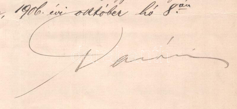 1909 Darányi Ignác (1849-1927) földművelésügyi miniszter autográf aláÃ...