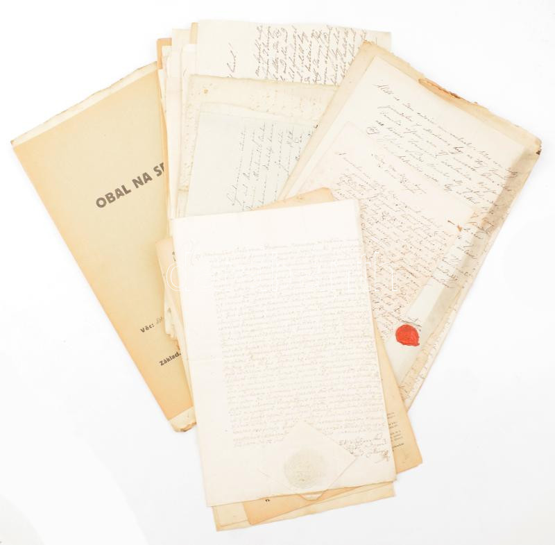 ca 1750-1800 Kb 30 db nagyrészt XVIII. századi kárpátaljai vonatkozású részben magyar nyelvű ex offo hivatalos és magán levél, szerződés, viaszpecsétekkel, stb átnézni, megfejteni való amatőr és profi történészeknek Nagykálló, Ungvár, Ferencz család, / Subcarpathian documents.