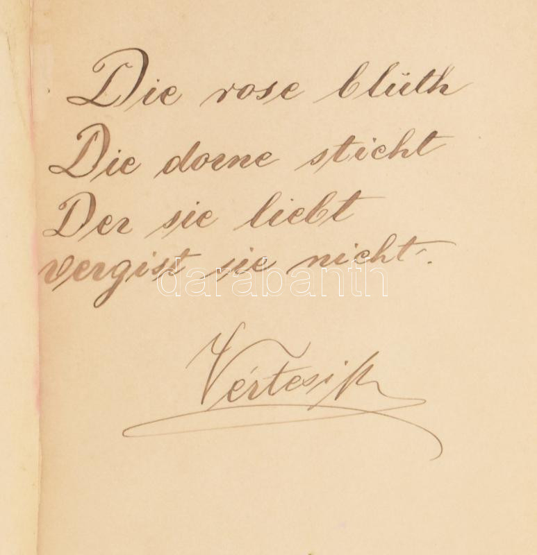 cca 1890-1895 Régi emlékkönyv, magyar és német nyelvű bejegyzésekkel, rajzokkal. Dekoratív, dombornyomott borítójú egészvászon-kötésben, viseltes állapotban, helyenként sérült, foltos, kijáró lapokkal.