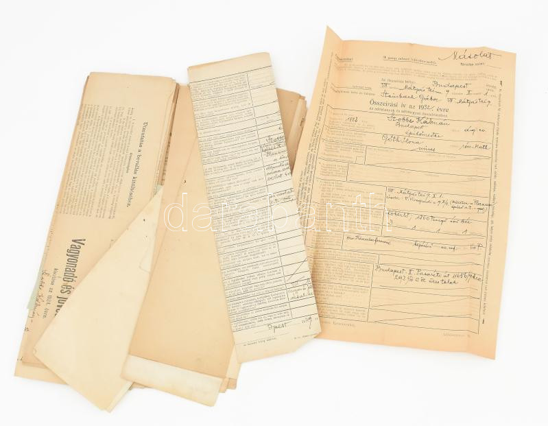 Leírás: cca 1890-1932 Stobbe Kálmán (1883-1936) építőmester, díszlettervező, labdarúgó, a magyar válogatott edzője részére szóló vegyes papírrégiség tétel