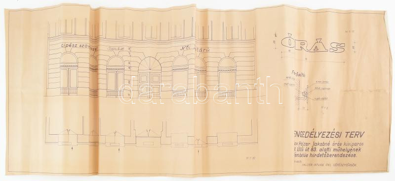 Leírás: cca 1920 Órás üzlet Bp., IX. Üllői út 83. fotólap, + 1950-es évekből a környékbeli házak tervrajza 85x31 cm