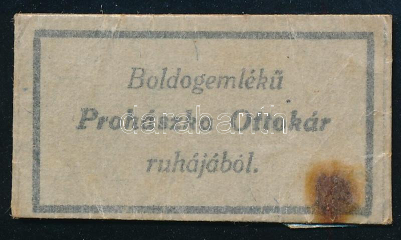 cca 1930-1940 "Boldogemlékű Prohászka Ottokár ruhájából", ru... https://www.darabanth.com/hu/471-Gyorsarveres/471.0/Mutargy-papirregiseg-egyeb/Tortenelmi-dokumentumok-keziratok-erdekessegek~5500001/cca-1930-1940-Boldogemleku-Prohaszka-Ottokar-ruhajabol-ruhaereklye~II3190378