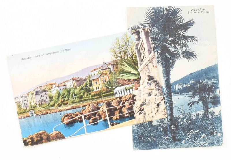 cca 1930 Haraszti Györgynek Abbáziából küldött 2 képeslap, egyikben Angyal Pál (1873-1949) jogász, egyetemi tanár, MTA tag említve, beazonosítandó aláírásokkal