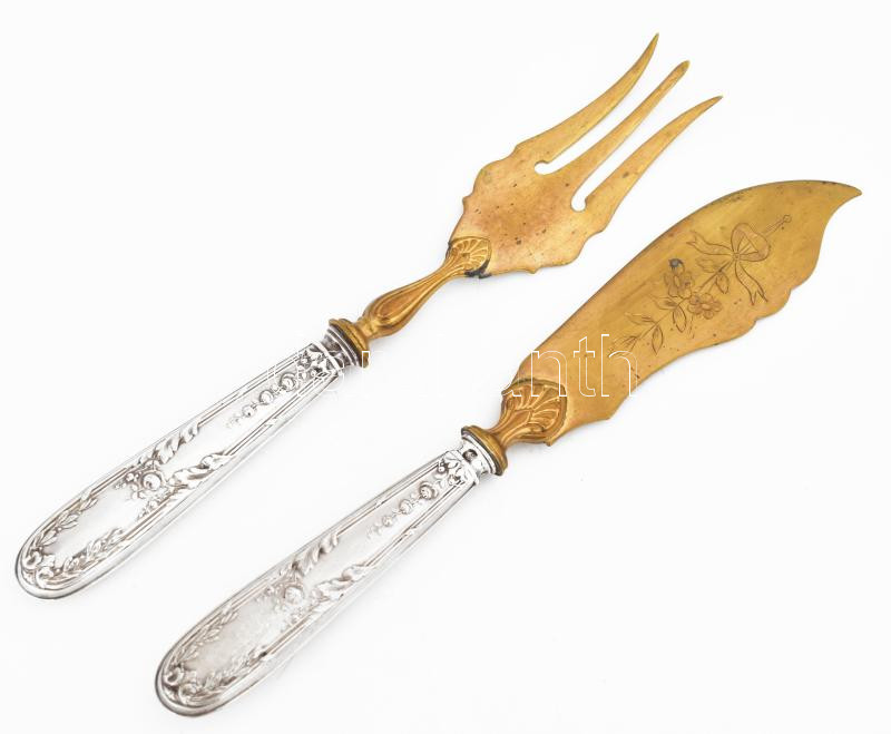 Leírás: Ezüst(Ag) halas készlet, jelzett, h: 19 cm, bruttó: 90,9 g
