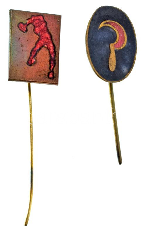 ~1945-1950. "Nemzeti Parasztpárt (NPP)" zománcozott bronz jelvény + "Magyarországi Szociáldemokrata Párt (MSZDP)" részben zománcozott bronz jelvény T:XF,VF zománchibák