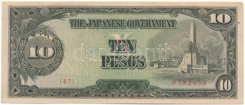 Philippi... https://www.darabanth.com/hu/471-Gyorsarveres/471.0/Numizmatika/Kulfoldi-bankjegyek~1500015/Fulop-szigetek-Japan-megszallas-DN-1943-10P-T-F-kis-foltPhilippines-Japanese-Occupation-ND~II3192170