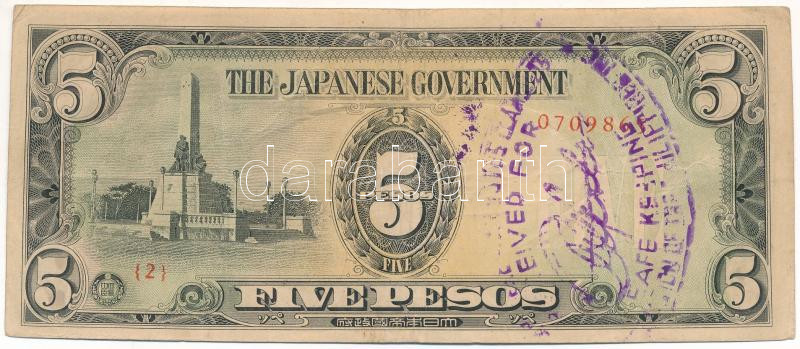 Philippines / Japanese Occupation ND (1943) 5 Pesos with blue overprint on the obverse C:F