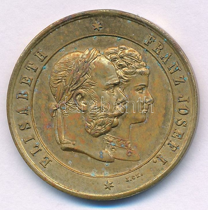 Austria 1879. "Franz Joseph and Elisabeth / Zur erinnerung an die Silberne Hochzeit ihrer majestäten (For Commemorating the 25th Anniversary of the Royal Couple)" gilt metal medallion (28mm) C:AU patina, worn gilt